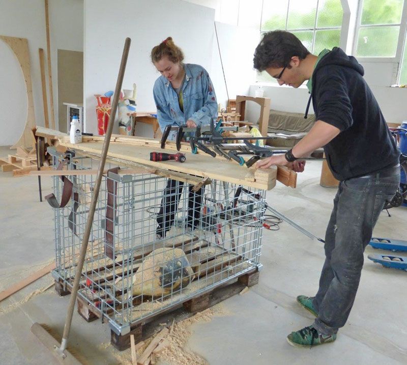 Sie erstellte den Entwurf, in dessen Zentrum das zerbrochene Boot steht, aus dessen Mitte – auf einem Totenbrett dargestellt – eine Hand wie aus einer Wasseroberfläche herausragt. Mit diesem Entwurf wandte sie sich an Joshua, der geduldig dankenswerterweise den Großteil der Umsetzung des Bootes übernahm. Das Totenbrett und die Hand wurden von Melina erstellt. Sie verbrachten Wochen damit das beinah intakte Boot zu bauen um es anschließend zu zerstören.